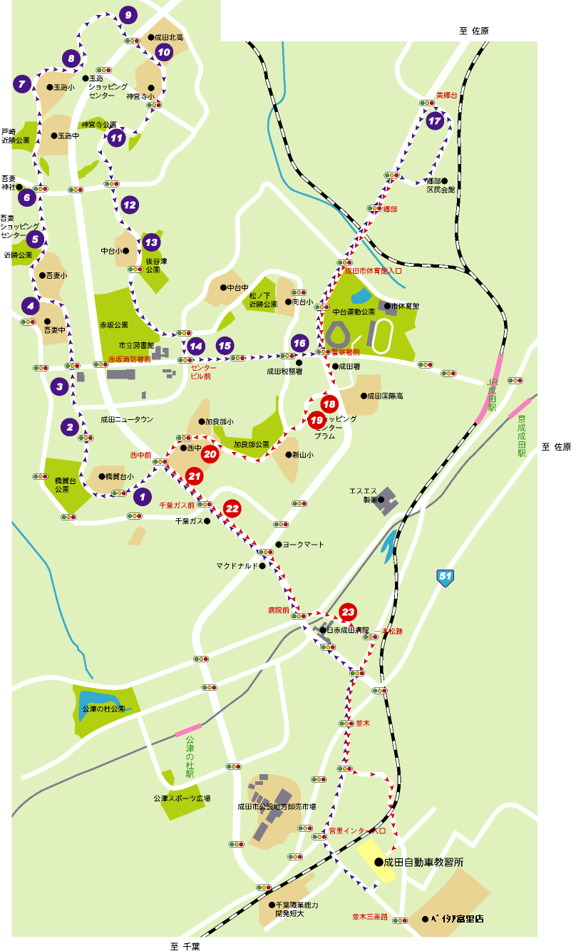 ※地図上の停留地番号(○数字)をクリックすると時刻表を表示します。